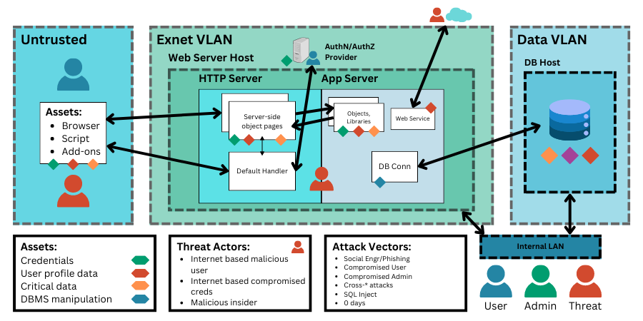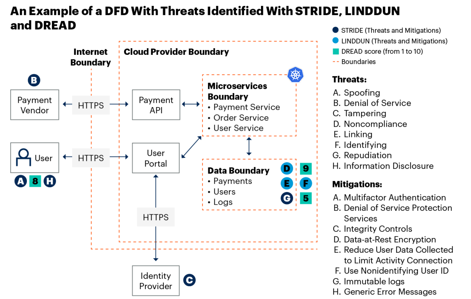 Figure 2 illustrates a DFD with threats identified using various frameworks. Those frameworks are discussed in the sections below.