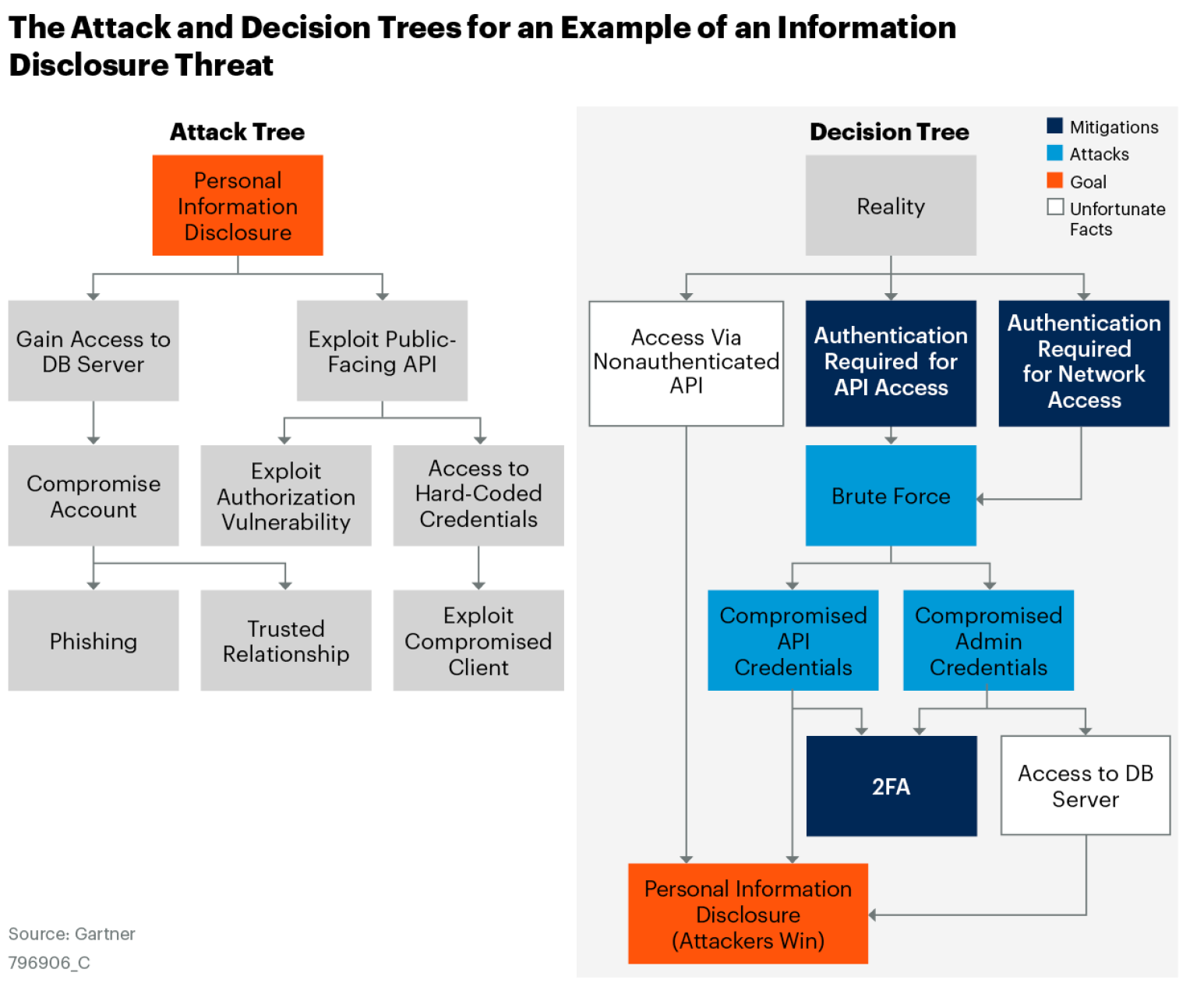 An alternative to attack trees is a decision tree which models the actions an attacker might take at each stage of an attack and what a system can do to counter the attacker. This approach can help teams understand the attacker mindset and decision-making process, along with the return on investment (ROI) of their attack.